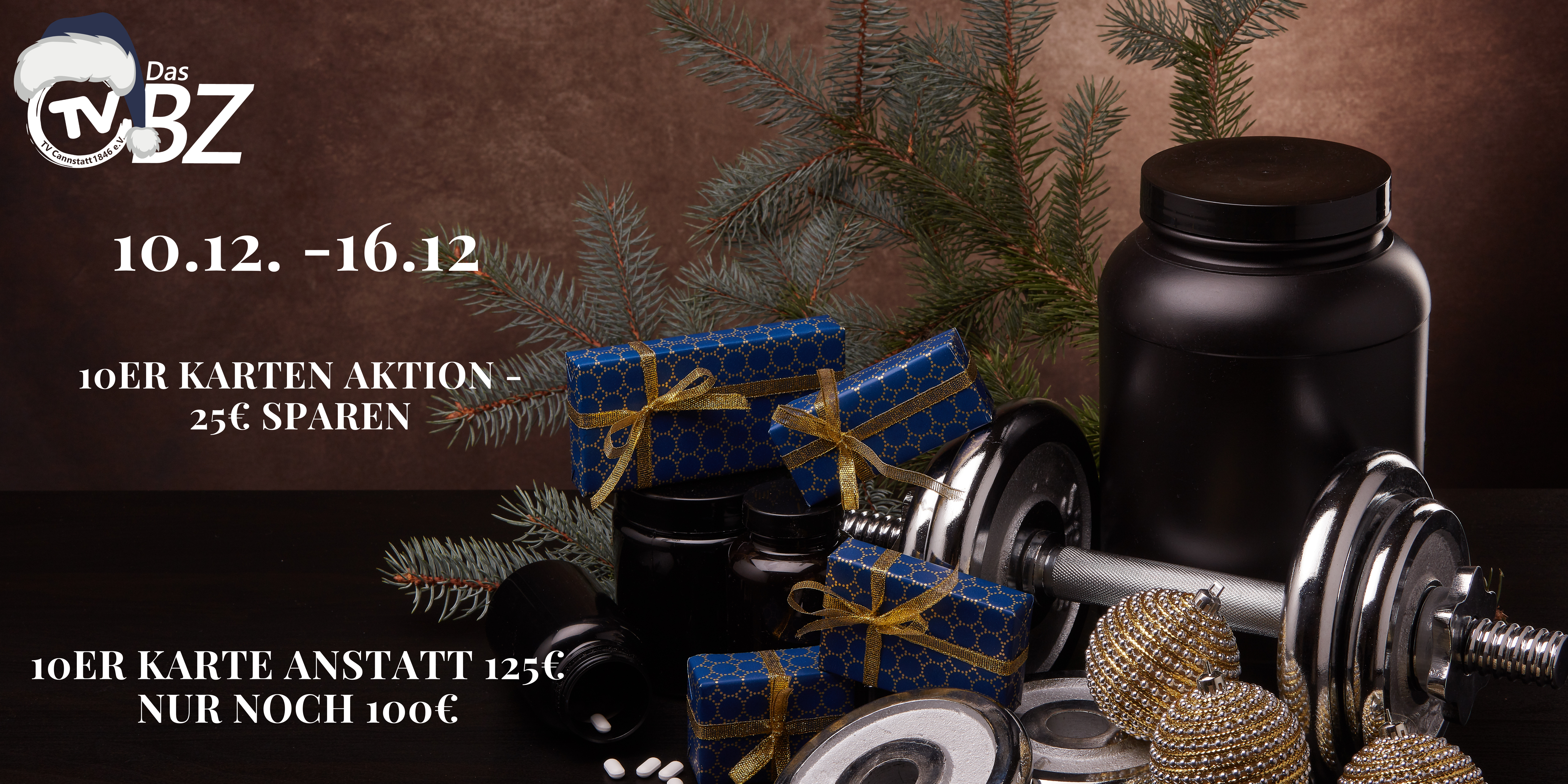 Spare in der Vorweihnachtszeit! Erhalte unsere 10er-Karten für nur 100 € statt 125 €. Perfekt, um Deine Fitnessroutine am Laufen zu halten oder als gesundes Weihnachtsgeschenk.