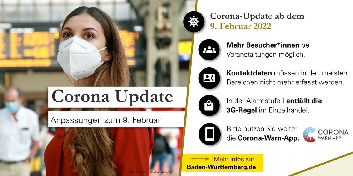 Die Landesregierung geht mit der angepassten Corona-Verordnung vorsichtige Öffnungsschritte. So entfällt die 3G-Regelung im Einzelhandel in der Alarmstufe I, es sind wieder mehr Zuschauerinnen und Zuschauer bei Veranstaltungen zugelassen und die Kontaktdaten müssen in den meisten Bereichen nicht mehr erfasst werden.