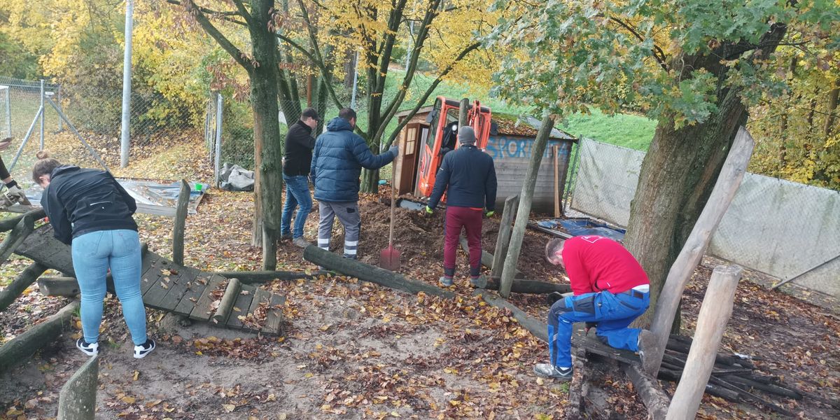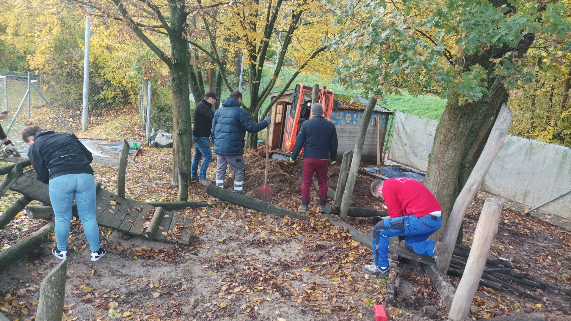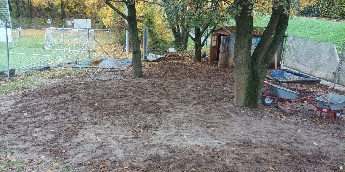 Am Samstag 19.11.2022 trafen sich viele fleißige Helfer im Garten unserer Sportkita, um den alten Sandkasten auszuheben.