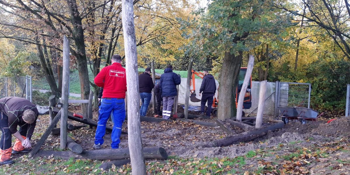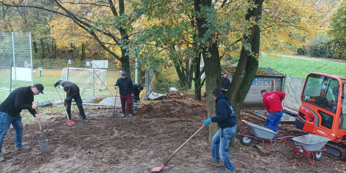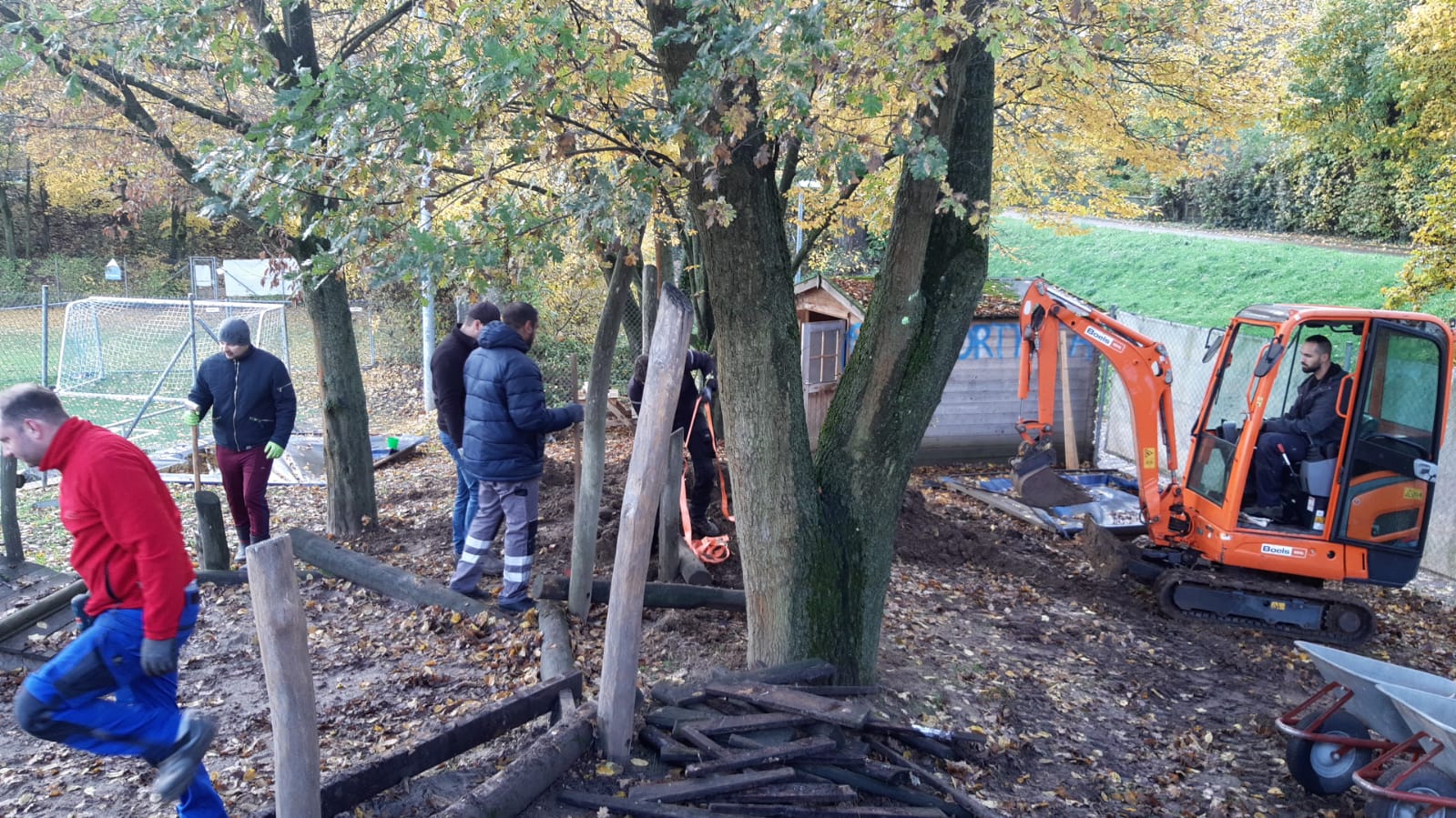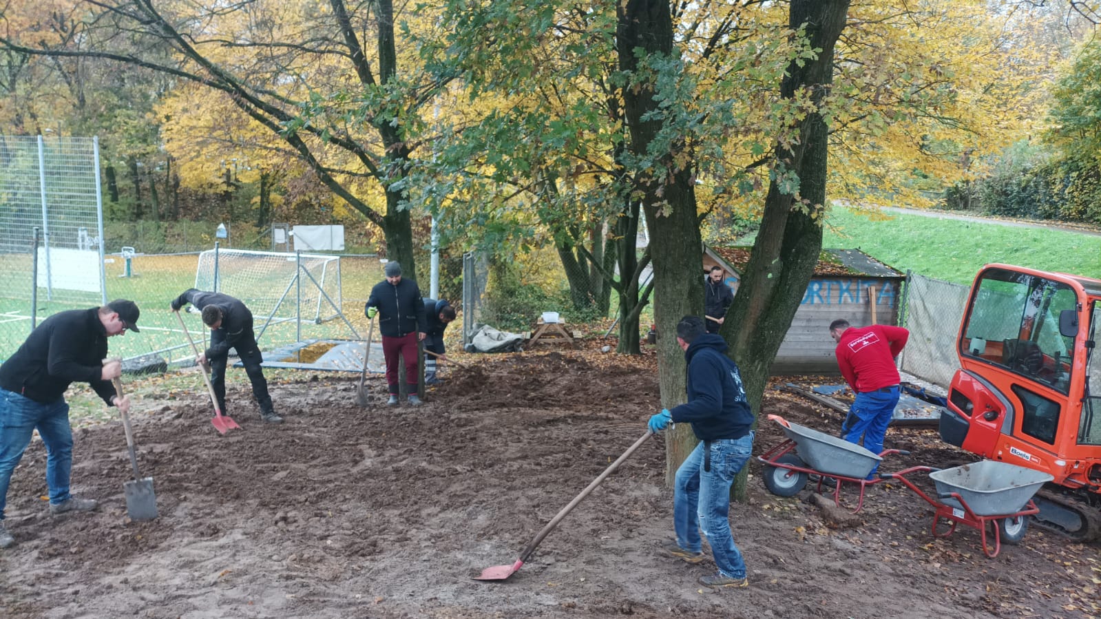 Am Samstag 19.11.2022 trafen sich viele fleißige Helfer im Garten unserer Sportkita, um den alten Sandkasten auszuheben.