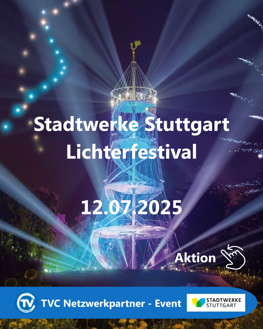 Unser Netzwerkpartner Stadtwerke Stuttgart lädt am 12. Juli 2025 zum großen Lichterfestival im Höhenpark Killesberg ein – mit Live-Musik auf vier Bühnen, kulinarischer Vielfalt und einer eindrucksvollen Licht-, Drohnen- und Feuerwerkshow.
