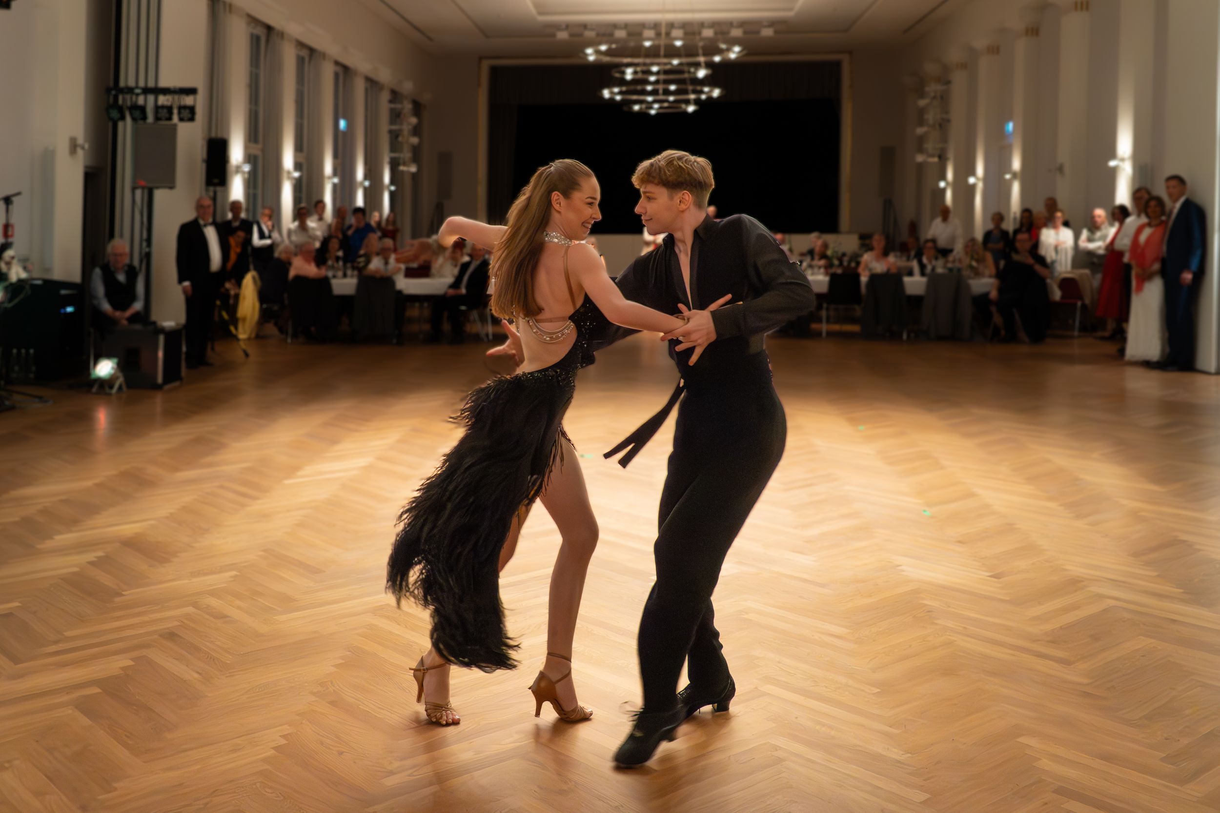 Den tänzerischen Höhepunkt bildete der Auftritt der süddeutschen Meister in 10 Tänzen, Evita Badt und Yevgen Golovchenko. Mit vier mitreißenden Lateintänzen – Samba, Cha-Cha-Cha, Rumba und Paso Doble – sowie einem beeindruckenden Jive als Zugabe eroberten sie das Publikum. Lang anhaltender Applaus und Bewunderung waren ihr Lohn.