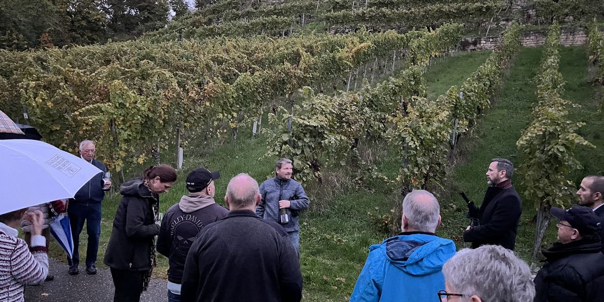 Bei herbstlicher Wetterlage führte Andreas Zaiß die Gäste über das Weingut bis hin zu seinem Weinberg. Nach der eindrucksvollen Führung luden Weinproben und herzhafte Flammkuchen zum gemeinsamen Austausch und gemütlichen Ausklang ein.
