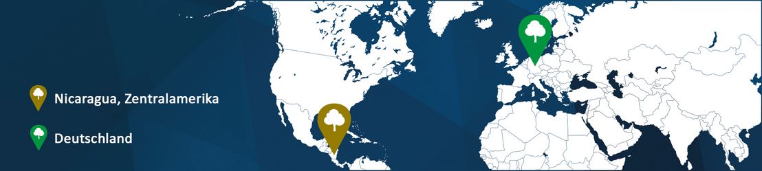 Der neue Wald, den wir mit Ihrer Unterstützung entstehen lassen, wächst auf den Flächen zweier Kleinbauern im Norden Nicaraguas. Zusätzlich bemühen wir uns auch um weitere Baumflächen in Deutschland, die mit neuen Bäumen bestellt werden. So können auch wir unseren Teil dazu beitragen, nicht nur international, sondern auch lokal den Baumbestand zu sichern und so langfristig die Wälder als Wasserspeicher, CO₂-Speicher, Rohstoffgeber, Erholungsorte und als Heimat vieler Arten zu schützen.